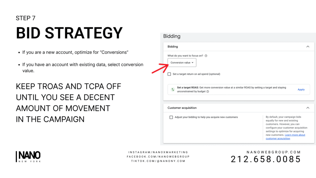 - Keep tROAS and tCPA off initially until the campaign gathers enough data.